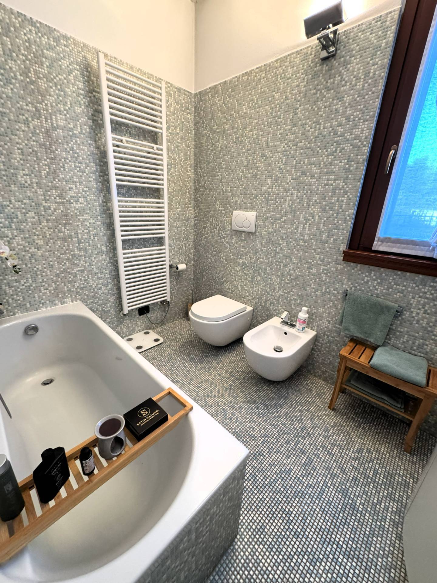 L'Appartamento è dotato di riscaldamento AUTONOMO a pavimento e tra le finiture principali segnaliamo le persiane esterne in alluminio, i serramenti interni in legno con doppio vetro, l'antifurto, le zanzariere e i climatizzatori.