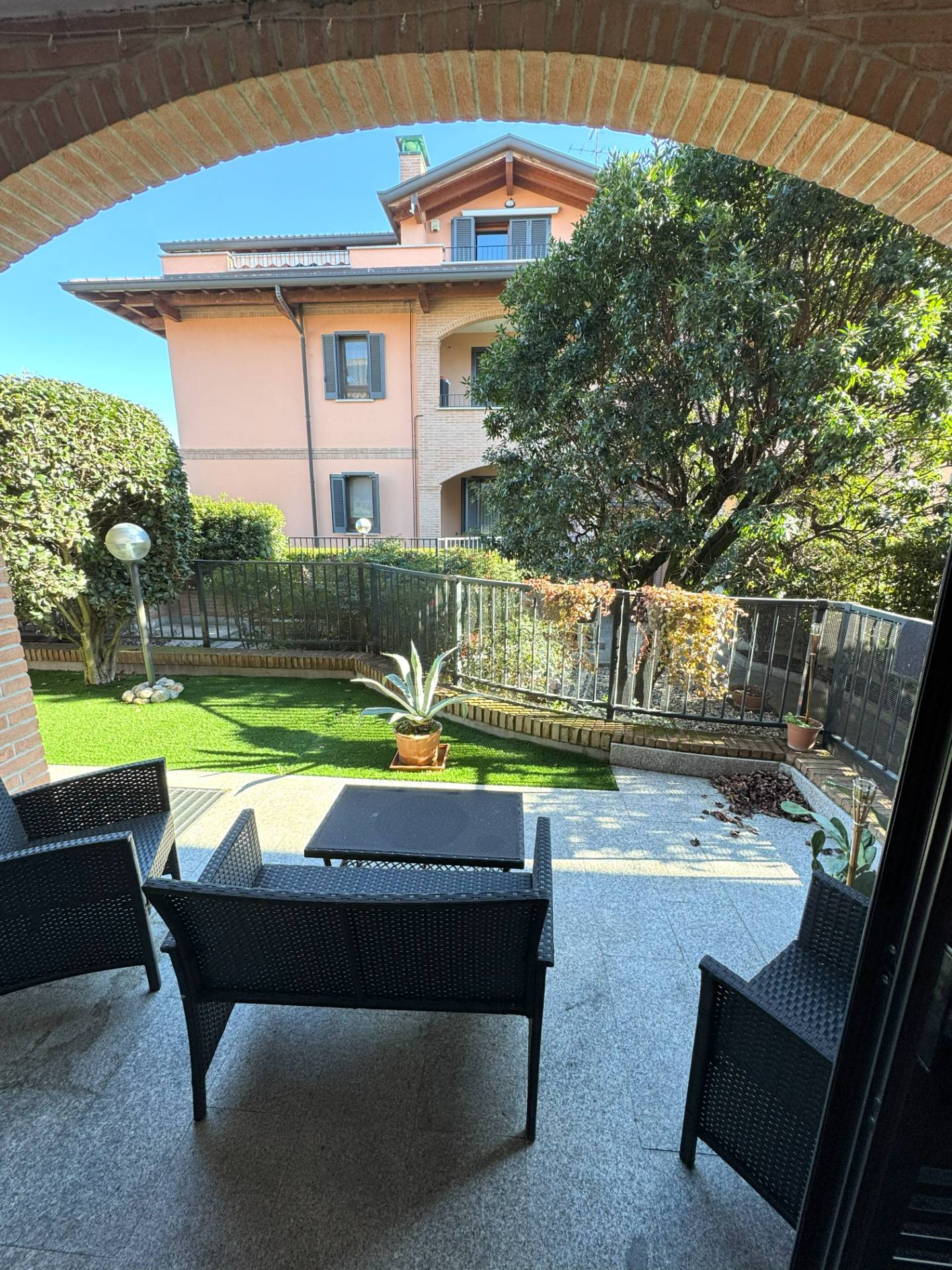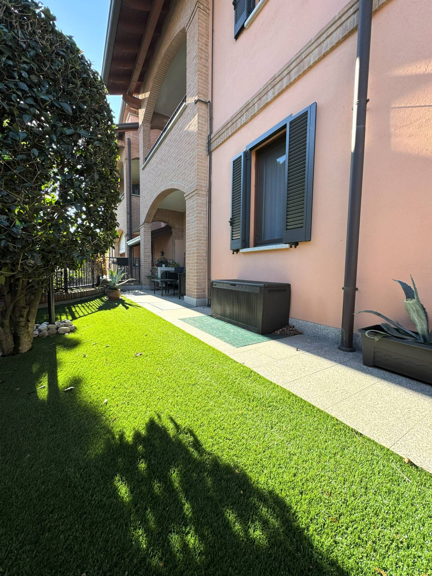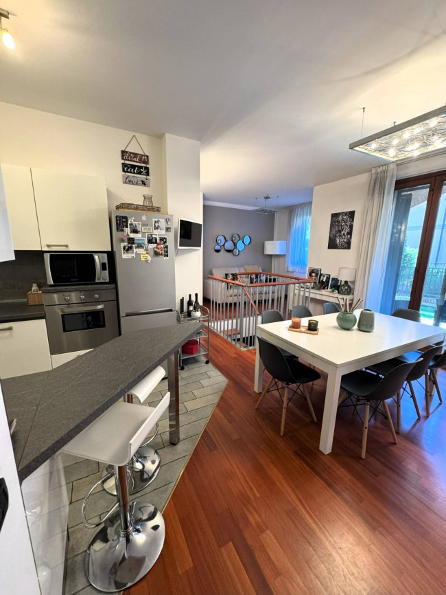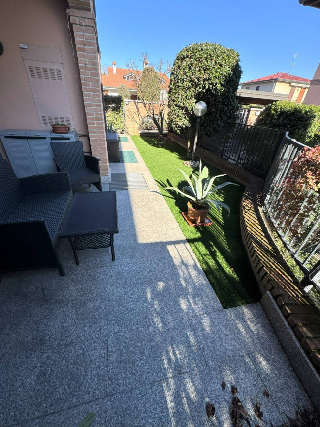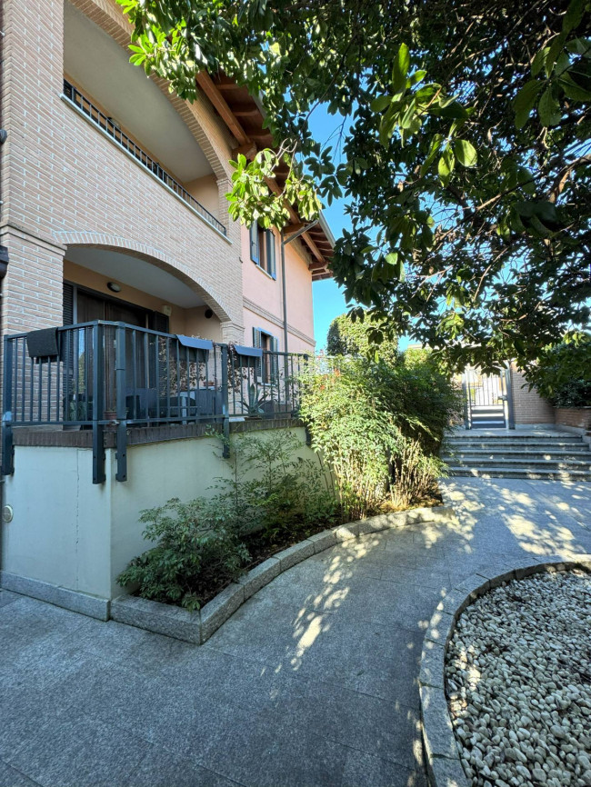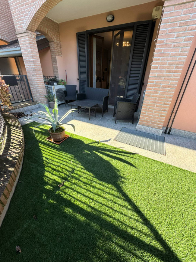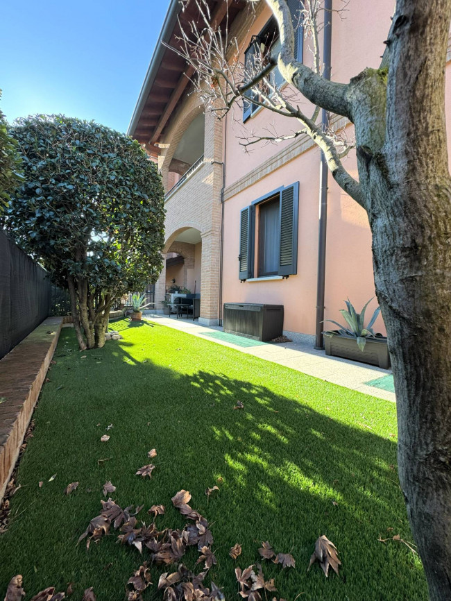 In elegante e tranquillo contesto di soli 2 piani edificato nel 2007, proponiamo grazioso Appartamento di circa 100 mq. posizionato al piano terreno e composto da: ingresso, soggiorno molto luminoso con cucina a vista, disimpegno, 2 camere e bagno (con vasca) oltre a porticato e GIARDINO PRIVATO di pertinenza di circa 40 mq. (il tutto sullo stesso livello abitativo).